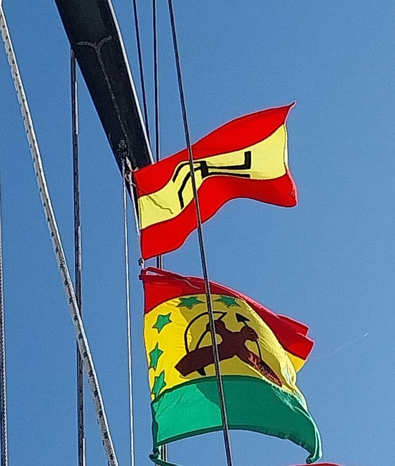 The Guna Yala region has two flags, both of which are flown in the region. One represents the territory of the region, and the other represents the Dule Revolution. The revolution flag is especially prominent in February each year when the Dule Revolution of 1925 is commemorated. This year, 2025, is particularly significant as it marks the 100th anniversary. This flag surprises some visitors because it includes a swastika.