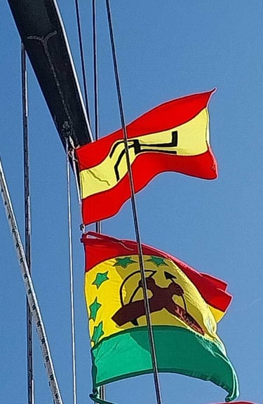 El rojo simboliza la sangre, el amarillo la riqueza (el oro) y el verde el territorio.