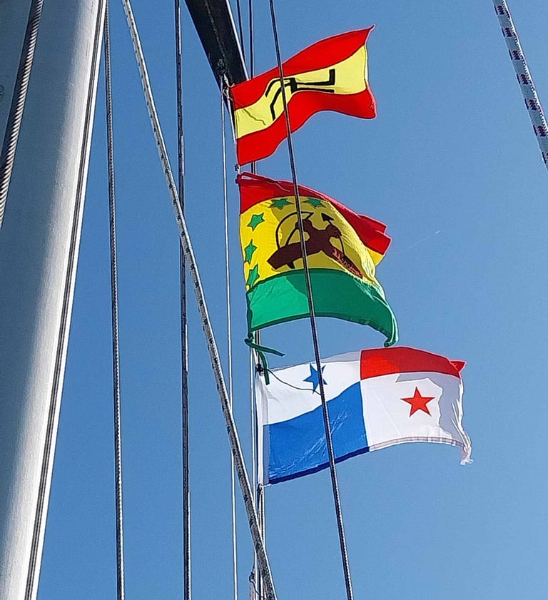 La bandera de Guna Yala siempre sorprende al visitante. La esvástica que aparece sobre el fondo de las tres franjas horizontales (rojo/amarillo/rojo) es un símbolo ancestral y nada tiene que ver con la esvástica nazi. De hecho, su cruz está en sentido opuesto.