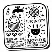 Our power source is solar energy, so please remember that electronic devices should be charged during daylight hours to ensure we can manage energy consumption effectively.
